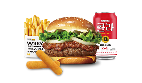 두툼한 직화 미트 패티 2장에 불고기 소스가 더해져 맛도 2배! 가성비도 2배!
