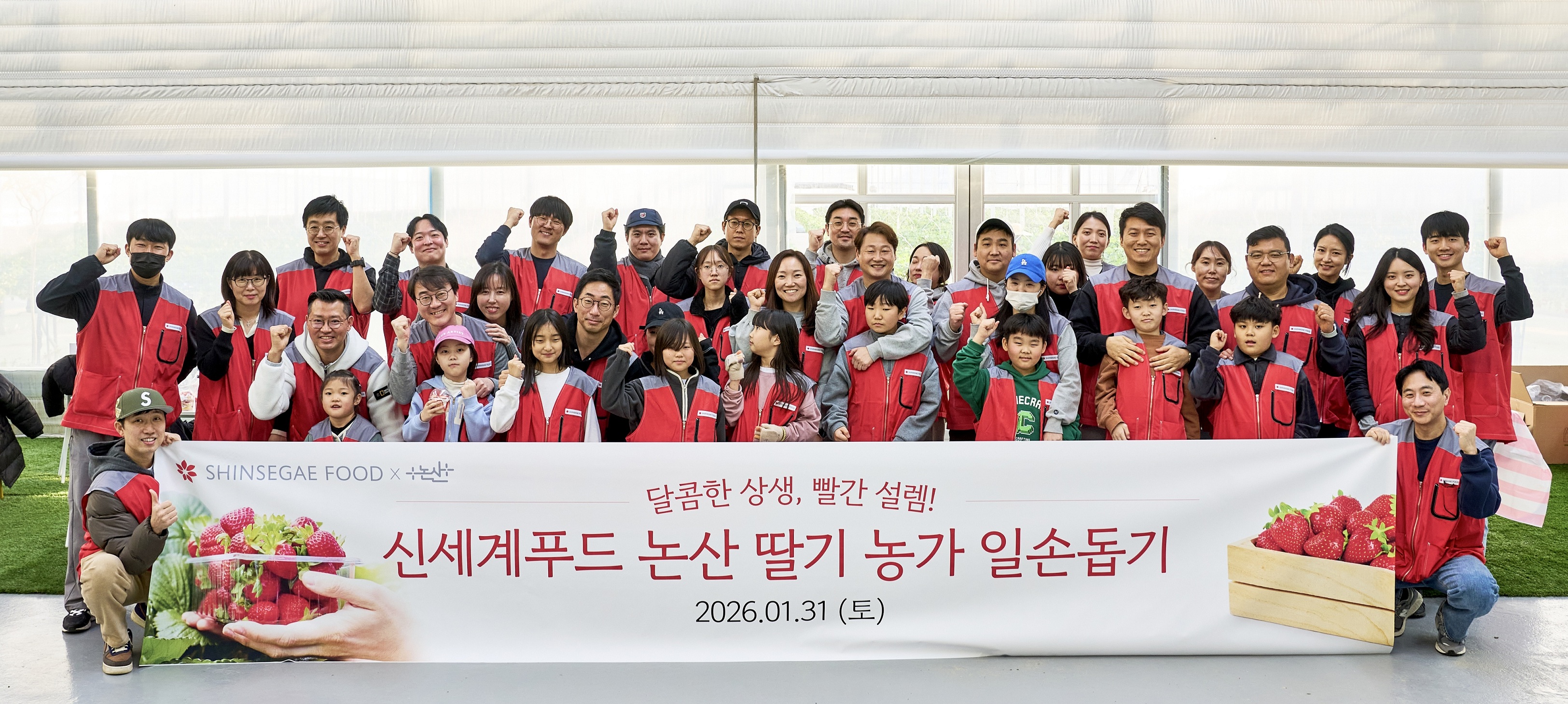 신세계푸드는 지난달 31일 충남 논산시 광석면에 위치한 베이커리용 딸기 공급 협력 농가 ‘잠뱅이 농장’을 방문해 일손 돕기 봉사활동을 진행했다고 2일 밝혔다.